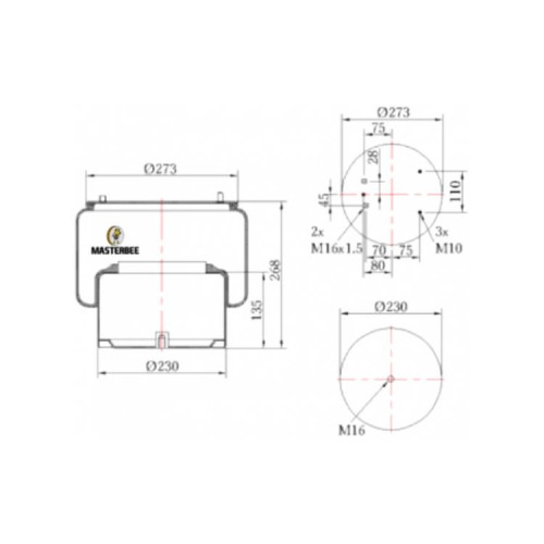 Пневмоподушка DAF 3 шпильки 2воздух 836MB (з металевим стаканом) (Masterbee) MR0836C02